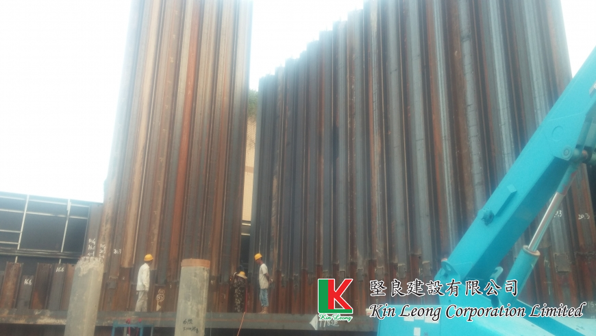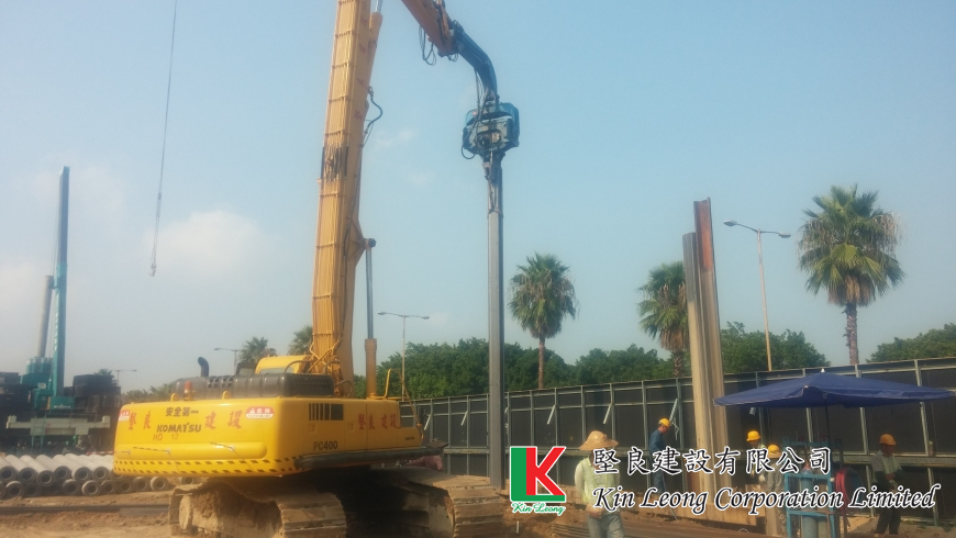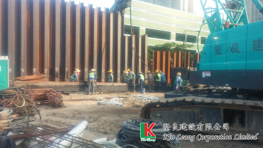 開挖, 椿承台建造, 灌注椿修整, 鋼板椿安裝 及 支撐 / Excavation, piling for construction, filling the spring dressing, steel plate installation and support.